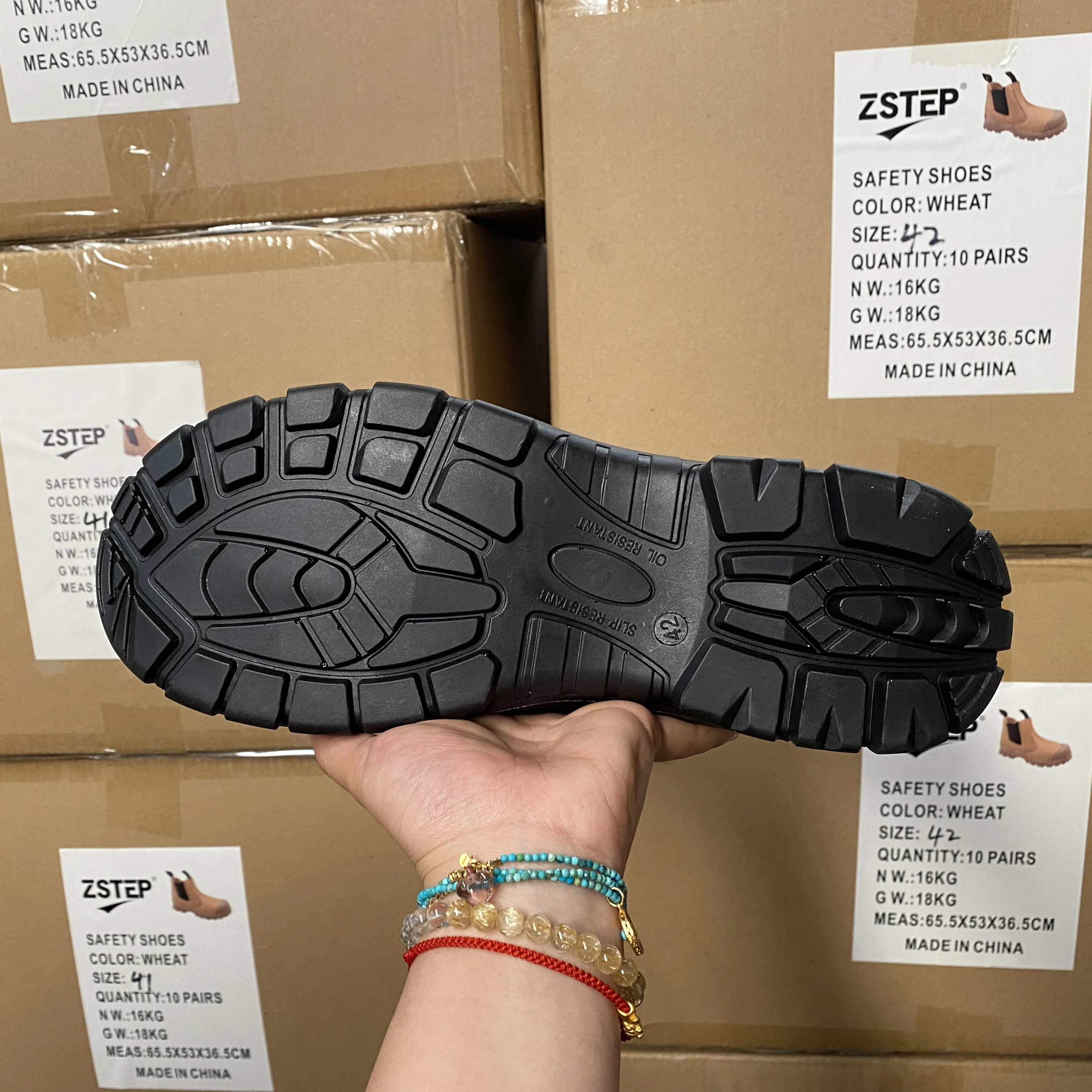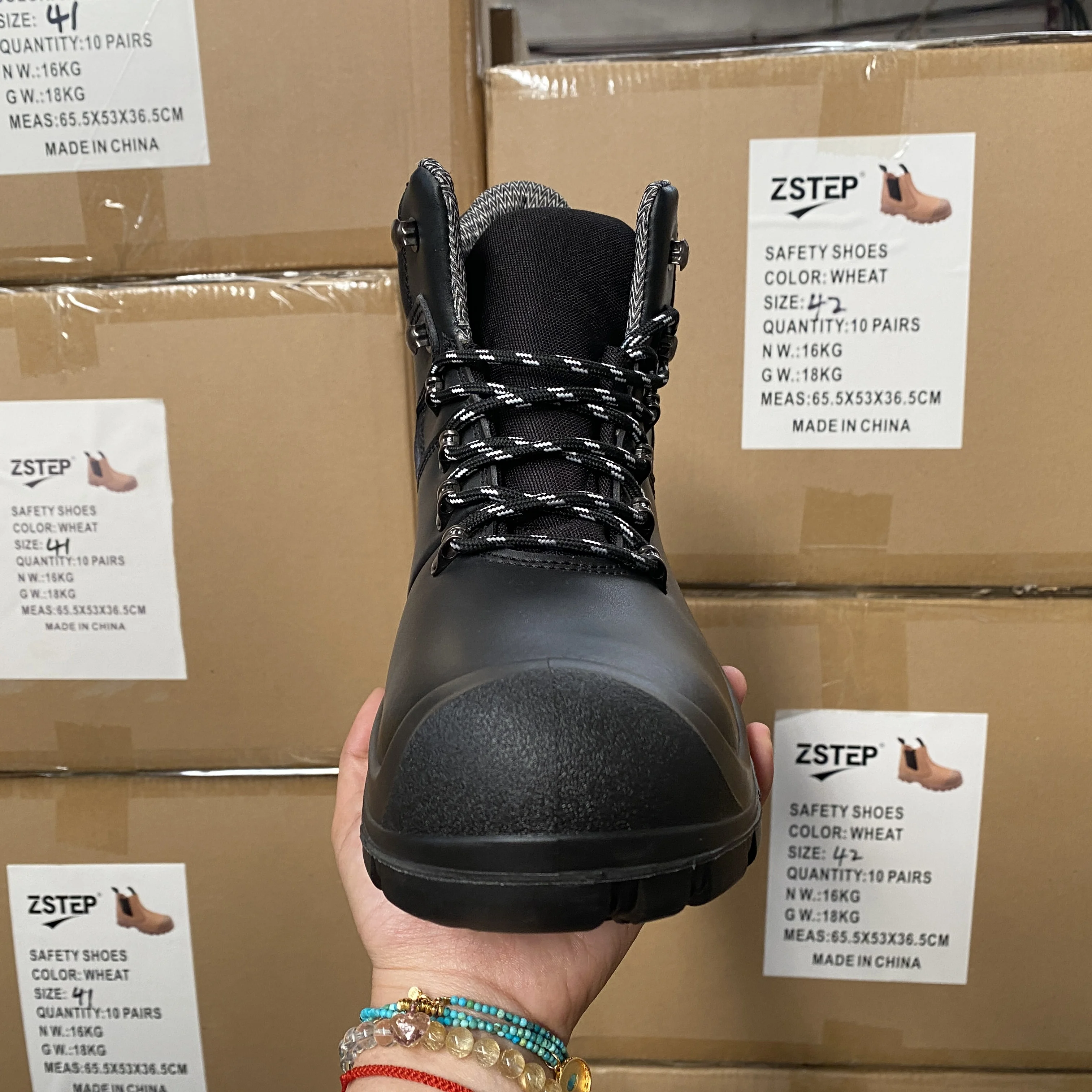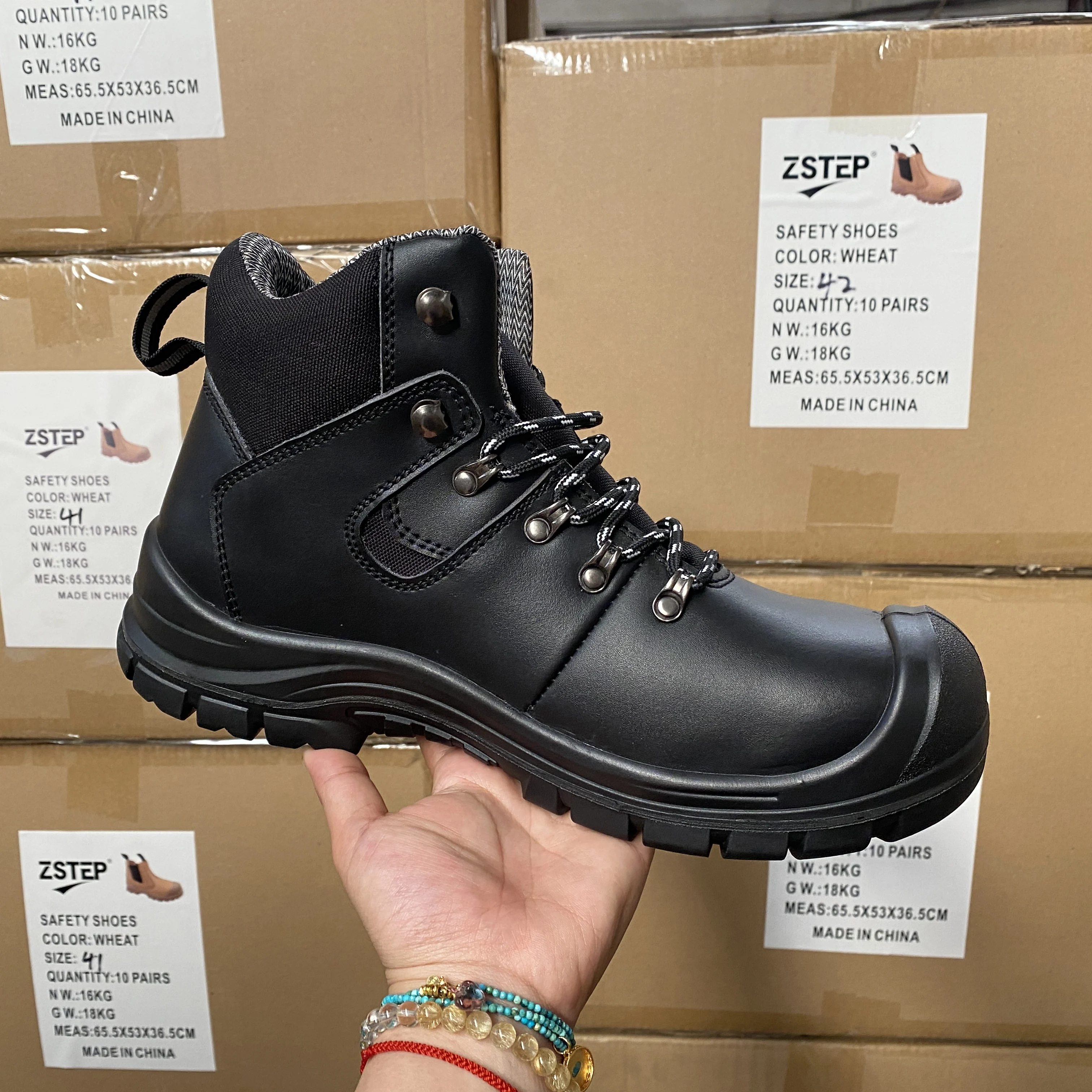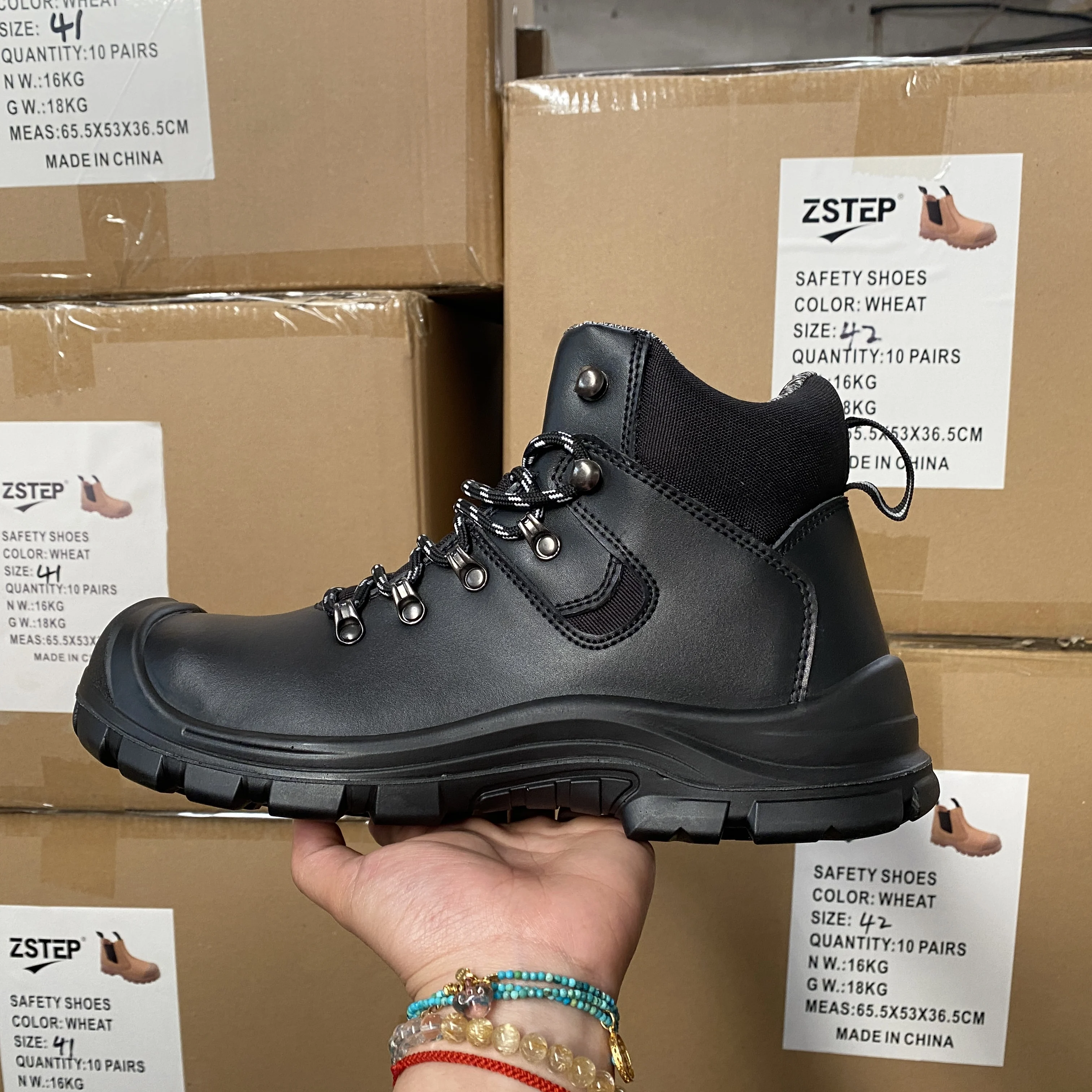 Zstep Embossed Leather Safety Shoes Basic Work Style Steel Toe Steel Plate Mid Cut PU Outsole